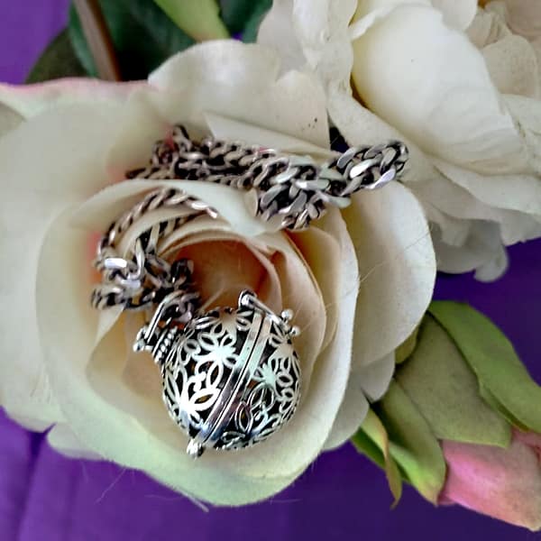 Baby Blessings are joyful, sacred occasion to be celebrated to the full. An Angel Caller’s origin is deeply rooted and associated with expecting mothers. They are generally worn on very long necklace chains or cords so that the harmony ball rests directly on the swollen abdomen of the expecting mother. It is said that from about 16-20 weeks of pregnancy that the unborn baby will hear the soft melodious chime sounds emanating from the harmony ball. The soft chiming sound is said to soothe the baby, calm the mother & call Guardian Angels to their side.